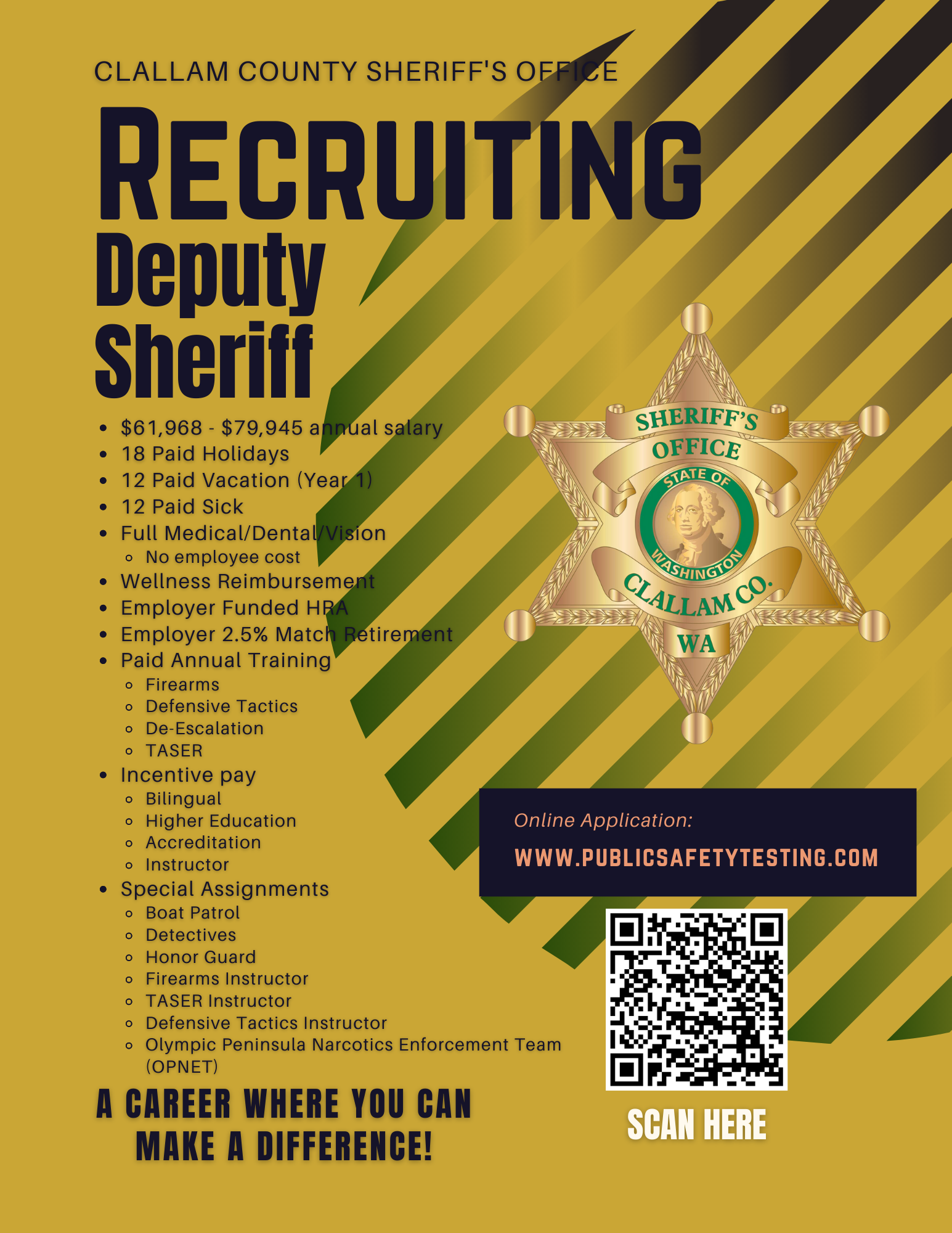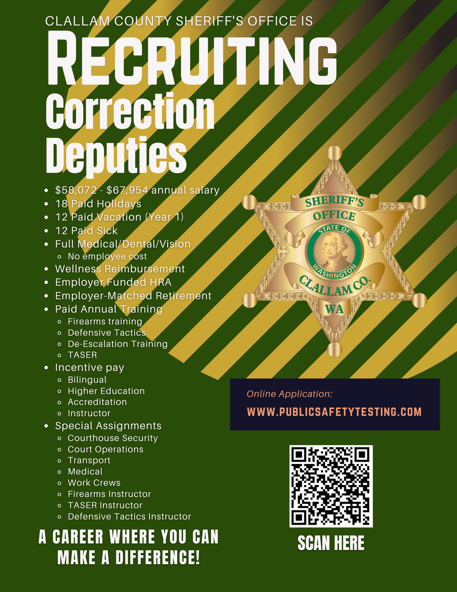 The Clallam County Sheriff’s Office is actively recruiting for Corrections Deputy & Deputy Sheriff.