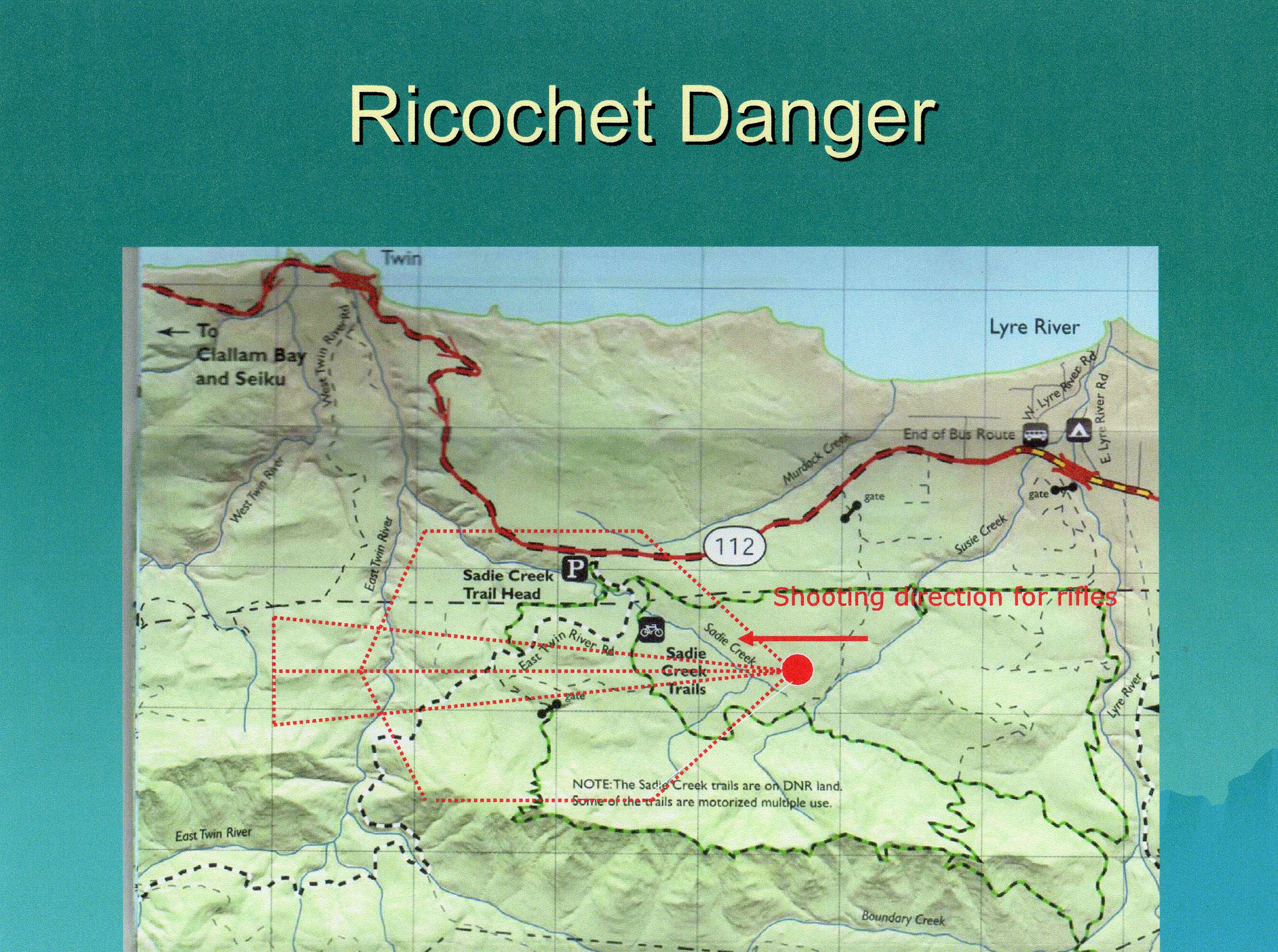- In a flyer posted at the Sadie Creek ORV Trailhead, it stated there will be a ricochet danger from the shooting range. Is this true?
